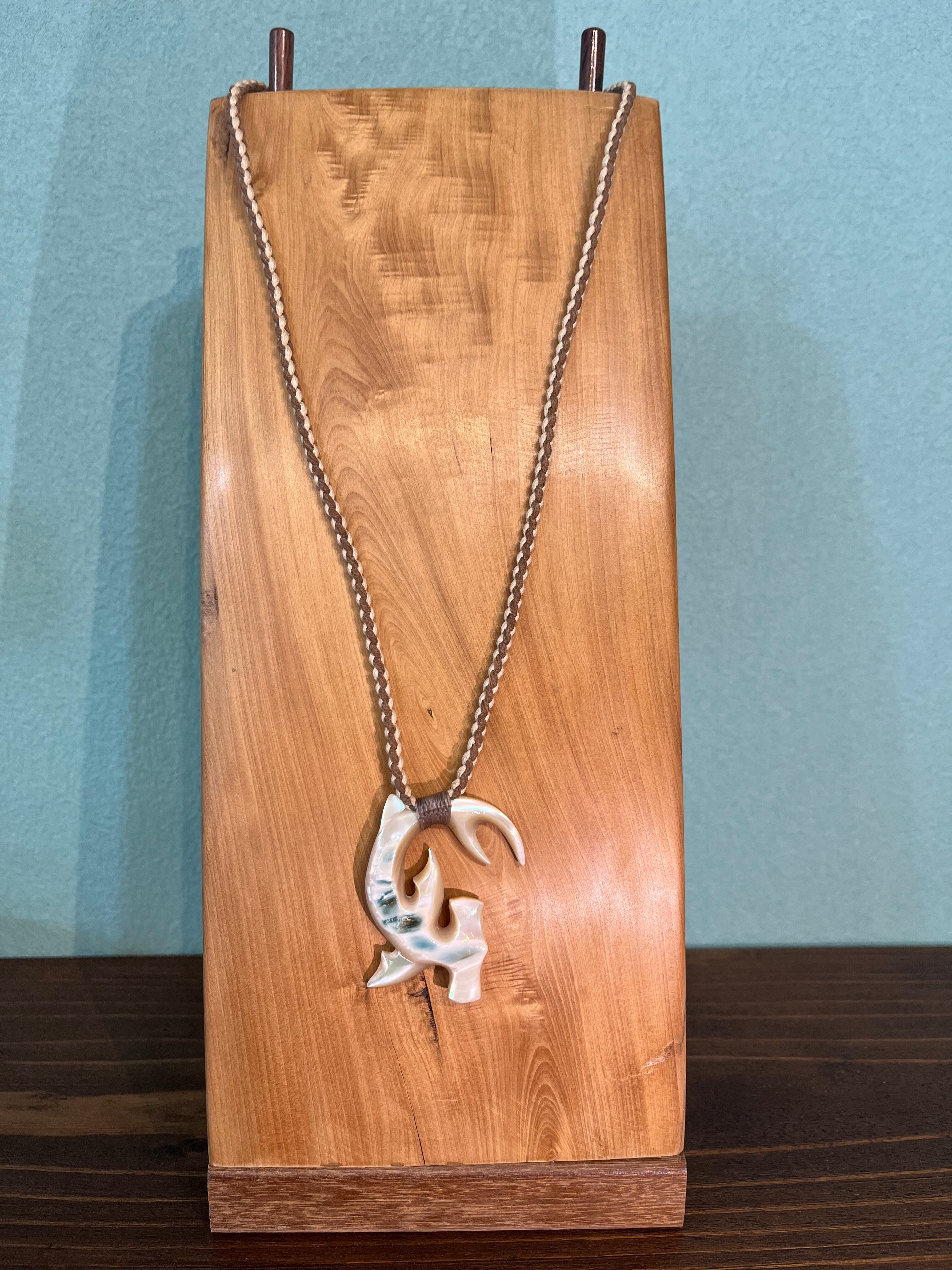 夜光貝をカービングして仕上げたハンマーヘッドシャークです。夜光貝の珍しいデザインです。