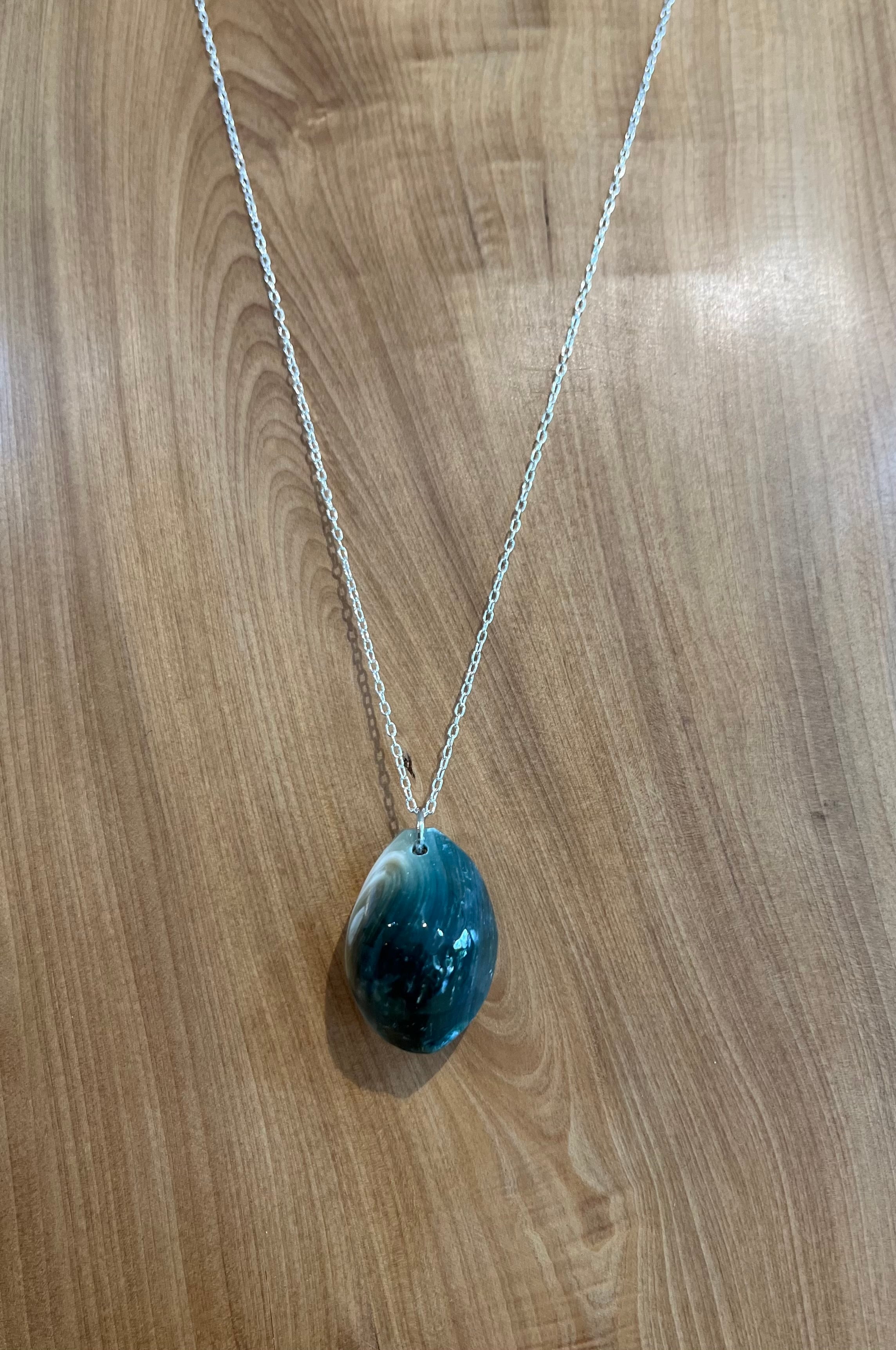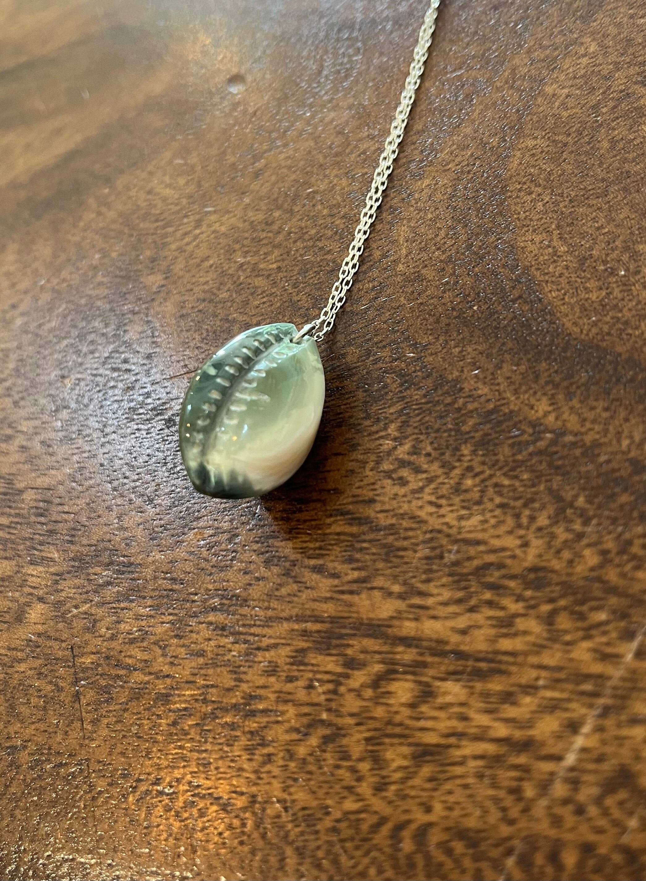 夜光貝のタカラガイペンダント 夜光貝を使用し、タカラガイのコロンとした形をした愛らしいペンダントです。貝で貝を作るというユニークなデザインが魅力的です。夜光貝の濃いグリーンの色合いが際立ち、普段使いから特別なシーンまで、あなたのコーディネートを引き立てるアイテムです!