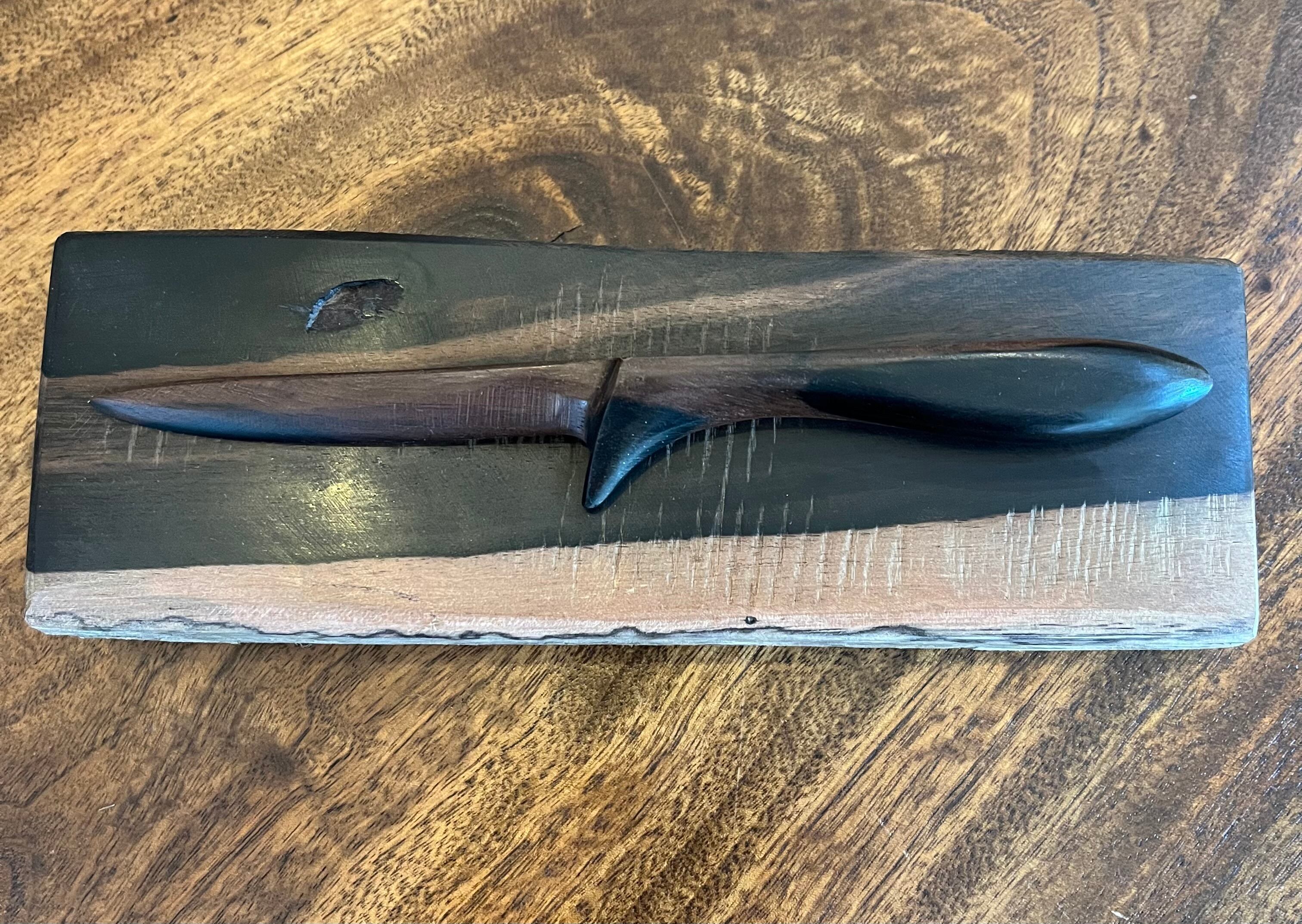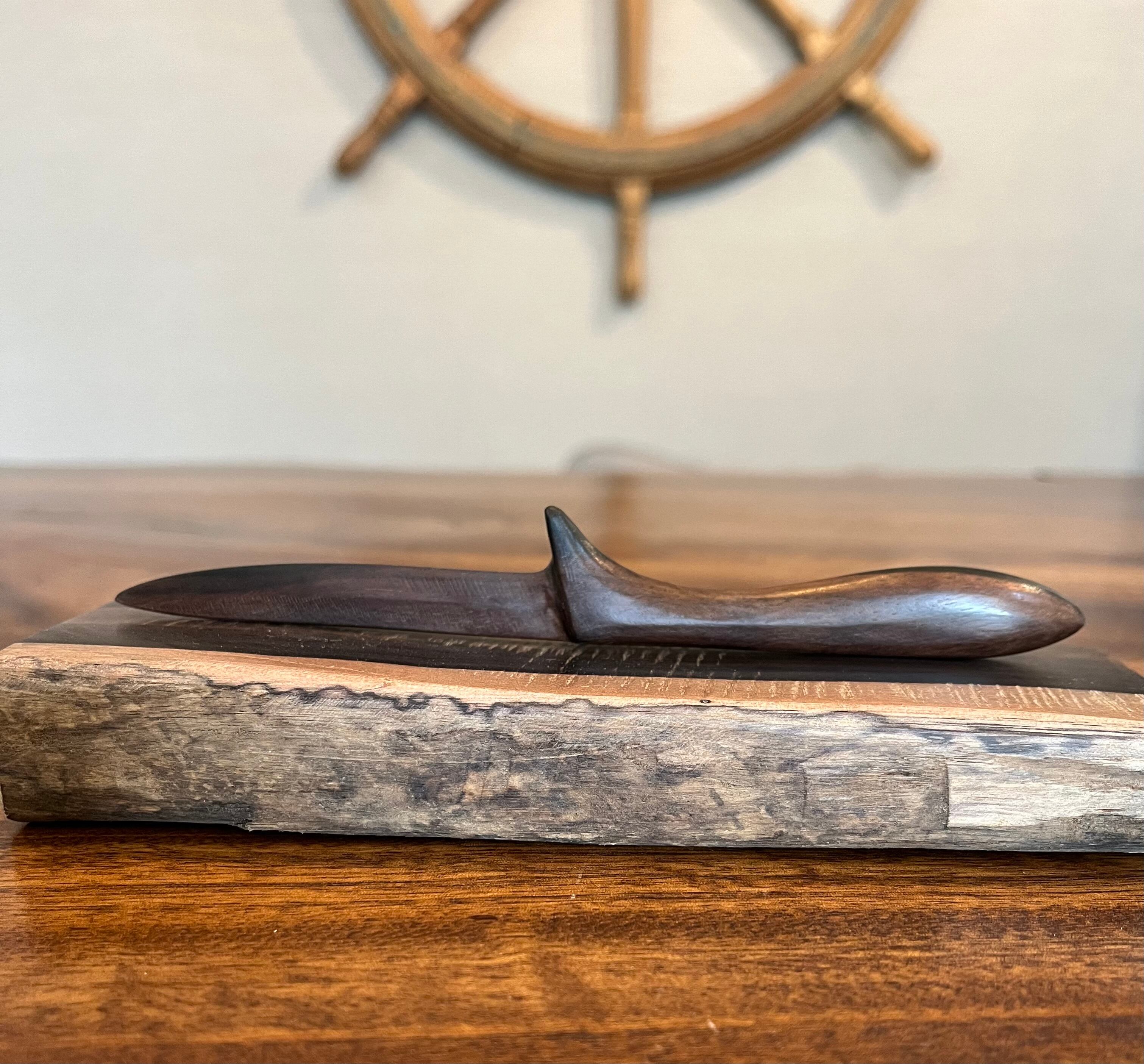 黒檀のペーパーナイフ 高密度の黒檀で作られたペーパーナイフです。エボニーとも呼ばれるこの素材は、その耐久性と美しい風合いが特長です。琉球黒檀は、三線などにも使われる貴重な素材で、上質な使い心地を堪能できます。