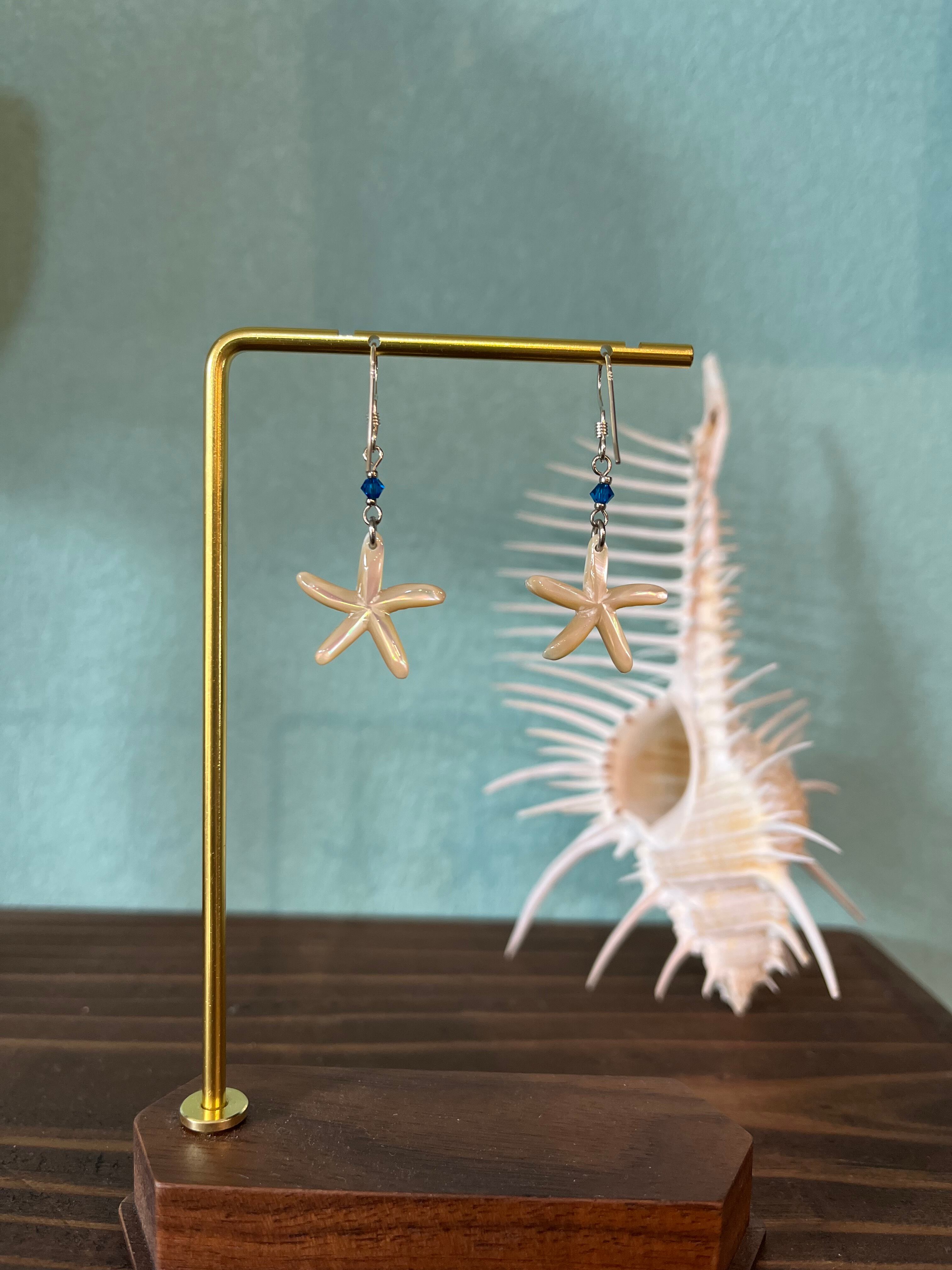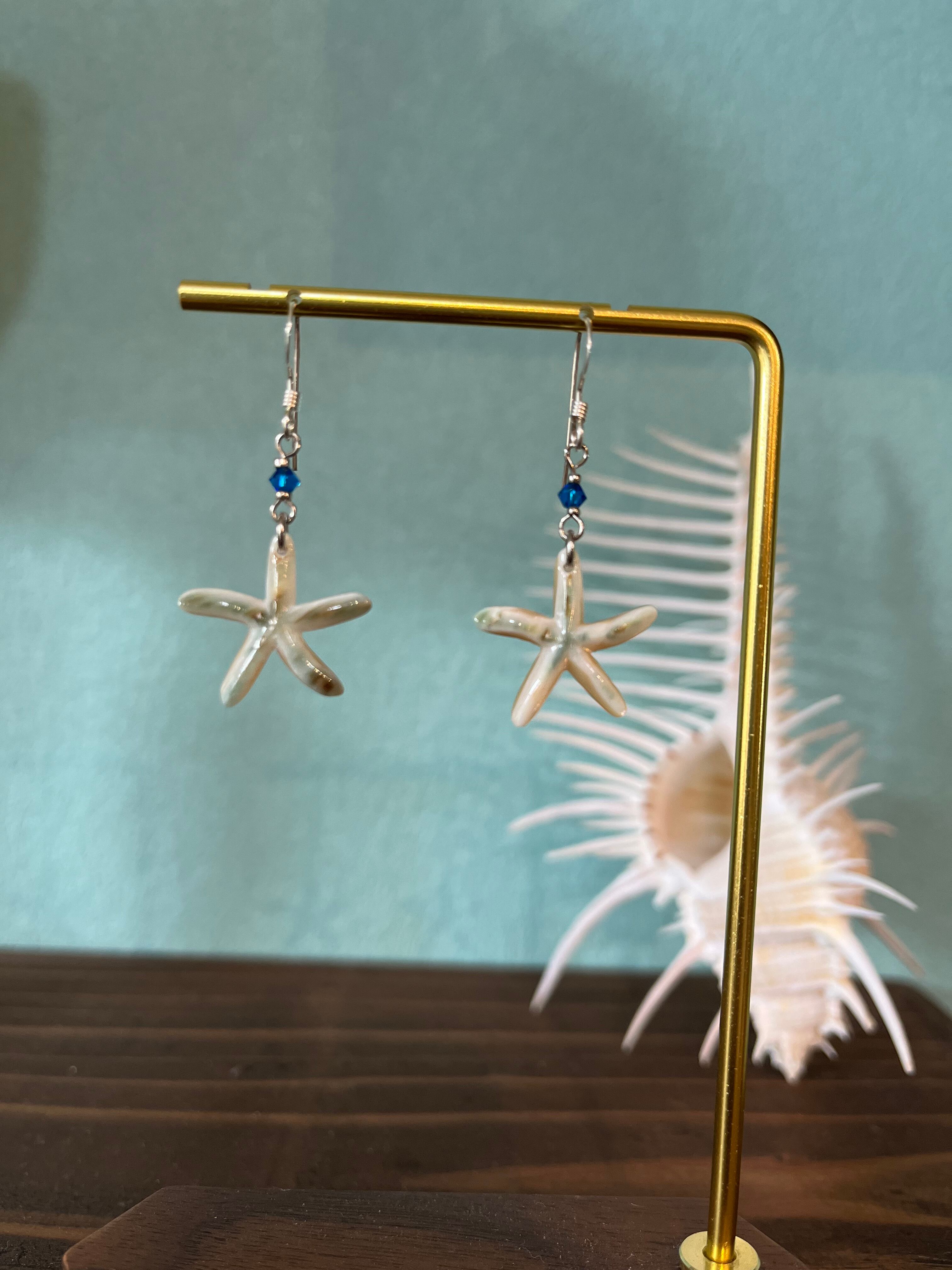 夜光貝を使用したヒトデのピアスです。自然なグリーンの色味が魅力的で、本物のヒトデのようなリアルさをお楽しみいただけます。ピアスのフックはシルバー925製で、品質も安心。身に着けることで、耳元に華やかな印象を与えてくれます。