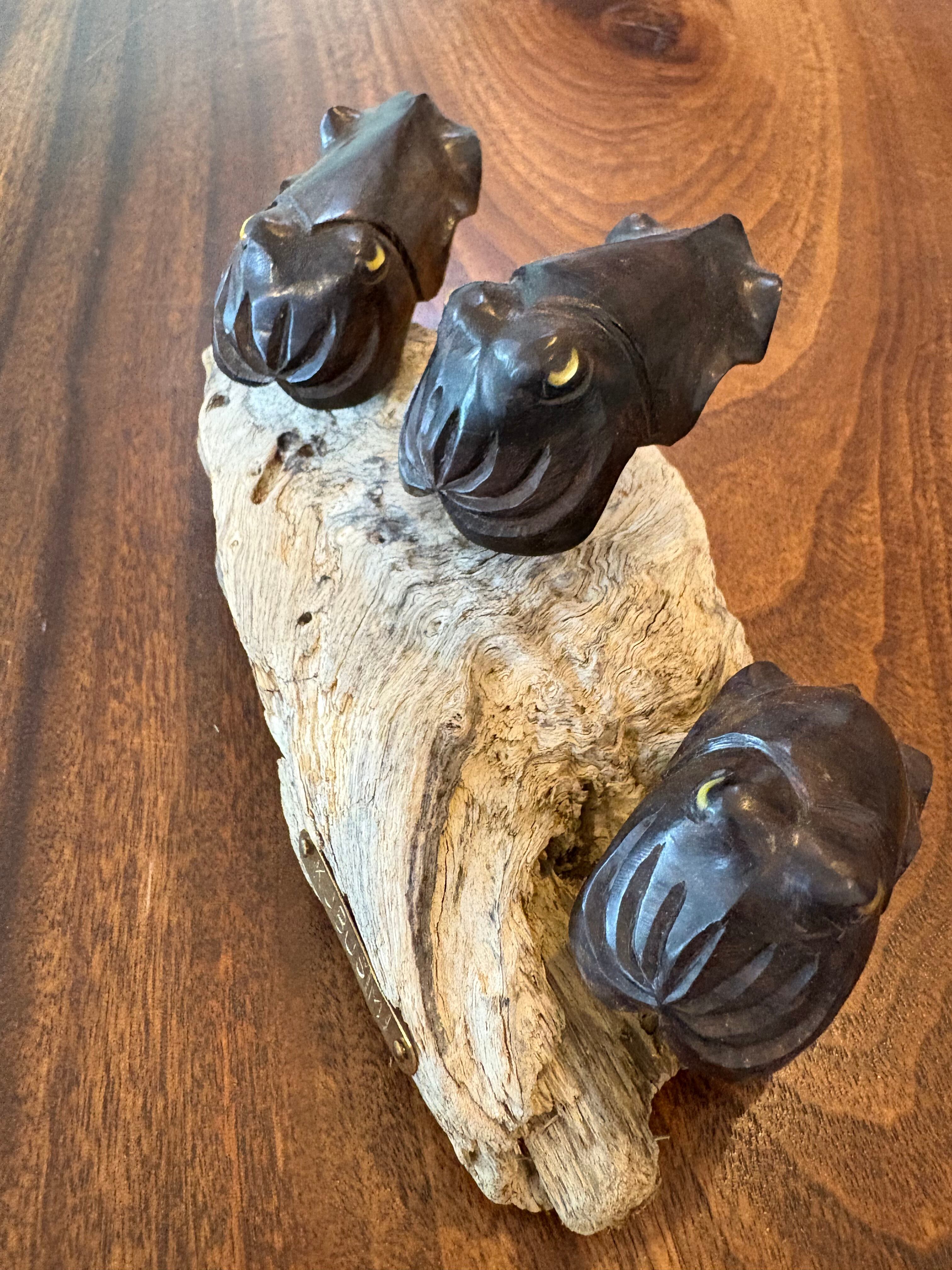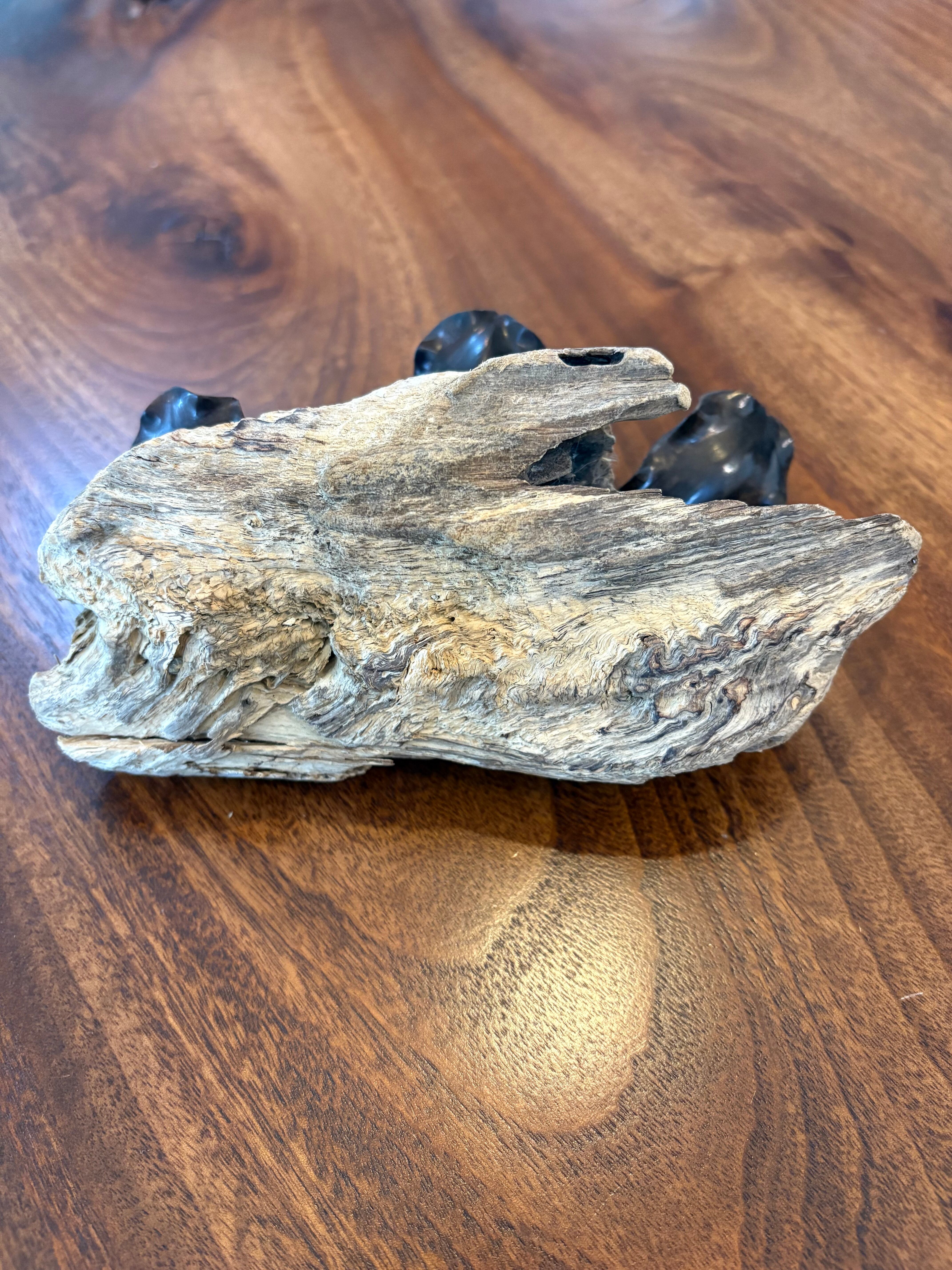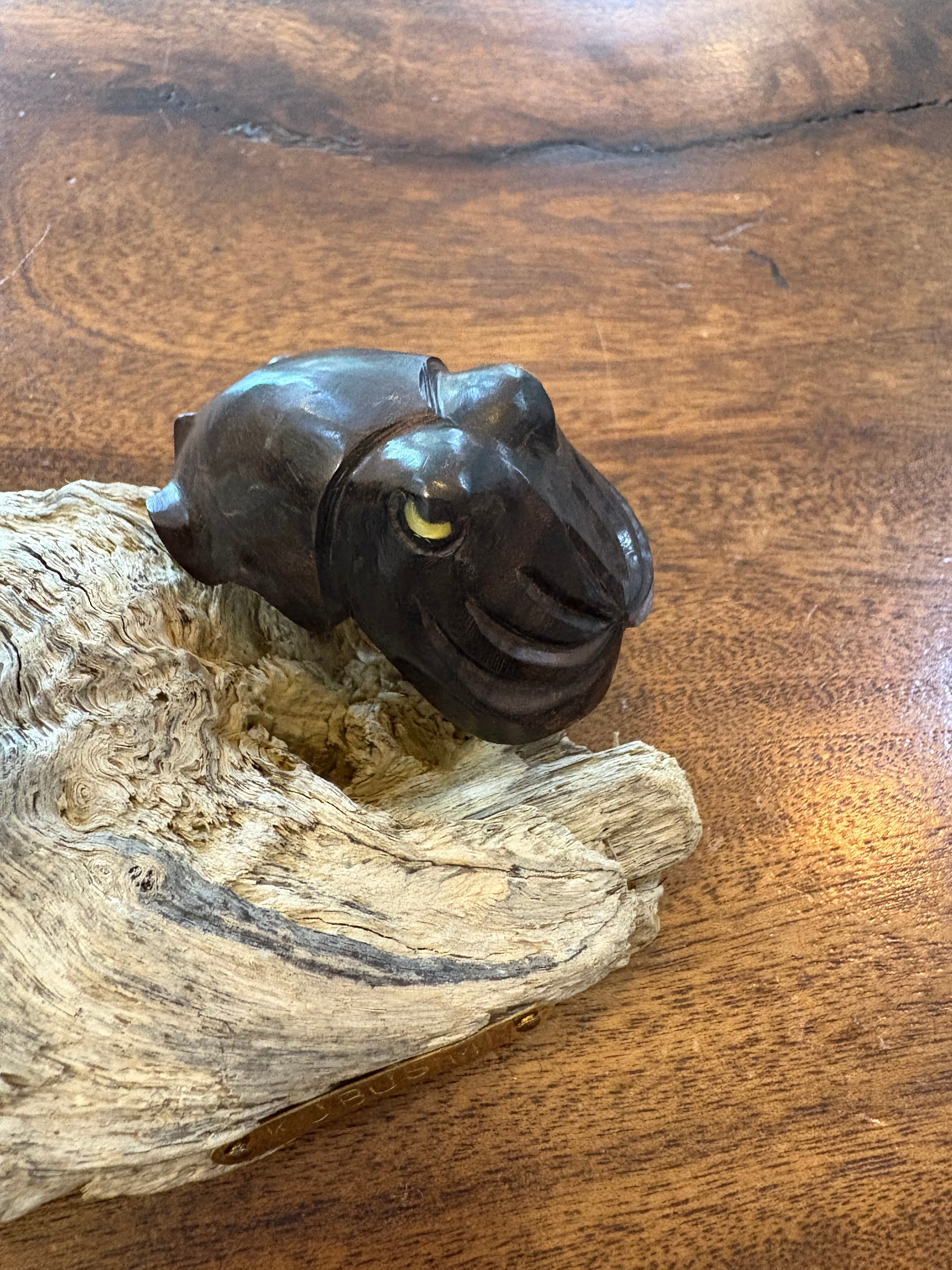 黒檀の重厚感ある質感と白蝶貝の目が印象的なクブシミのオブジェです。台座には自然の流木を使用し、沖縄の海と森を感じさせる一品。お部屋やオフィスのインテリアとしてもおすすめです。 オブジェの高さ:6、5㎝×14㎝ 流木の大きさ:14㎝×8㎝ 黒檀クブシミ:6㎝×3㎝ 3匹 クブシミの目:白蝶貝