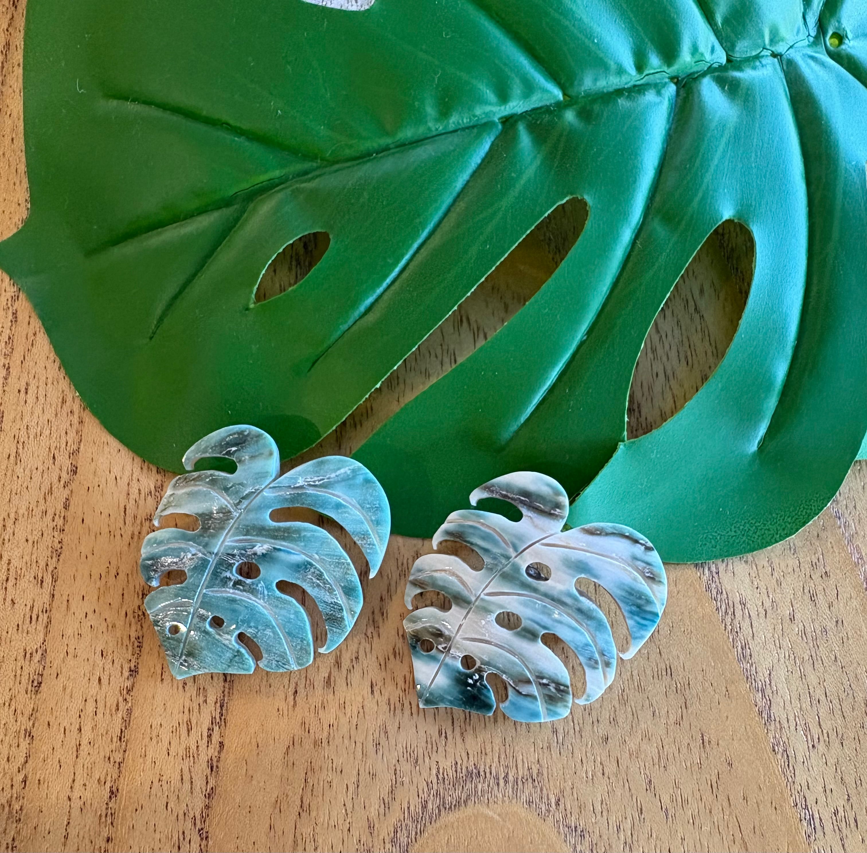 夜光貝モンステラブローチです。美しい夜光貝を使用して作られたモンステラのデザインは、これからの季節にぴったりなアイテムです。グリーンの色合いがモンステラの特長を引き立て、シンプルながらも存在感のあるアクセントを実現しています。