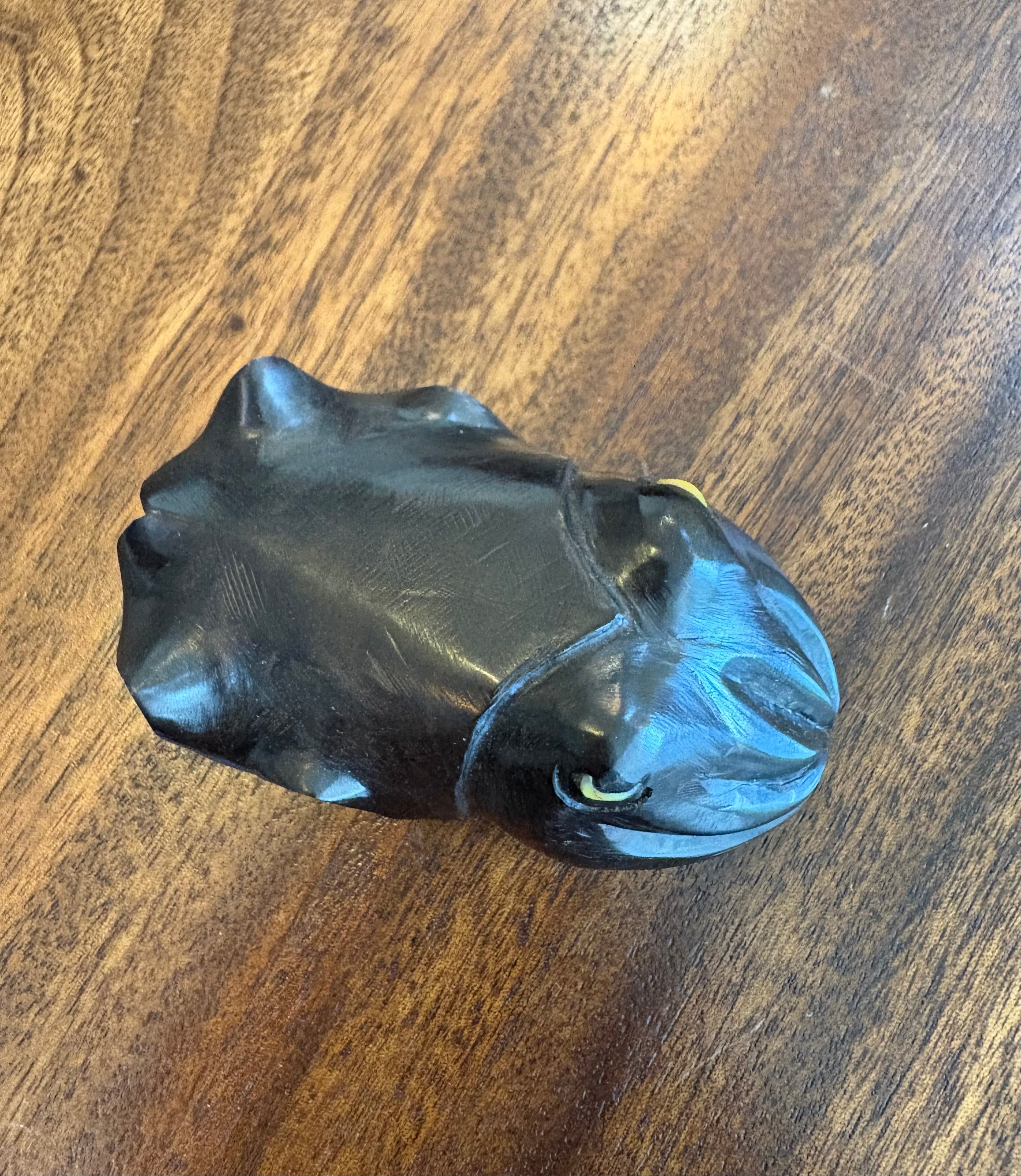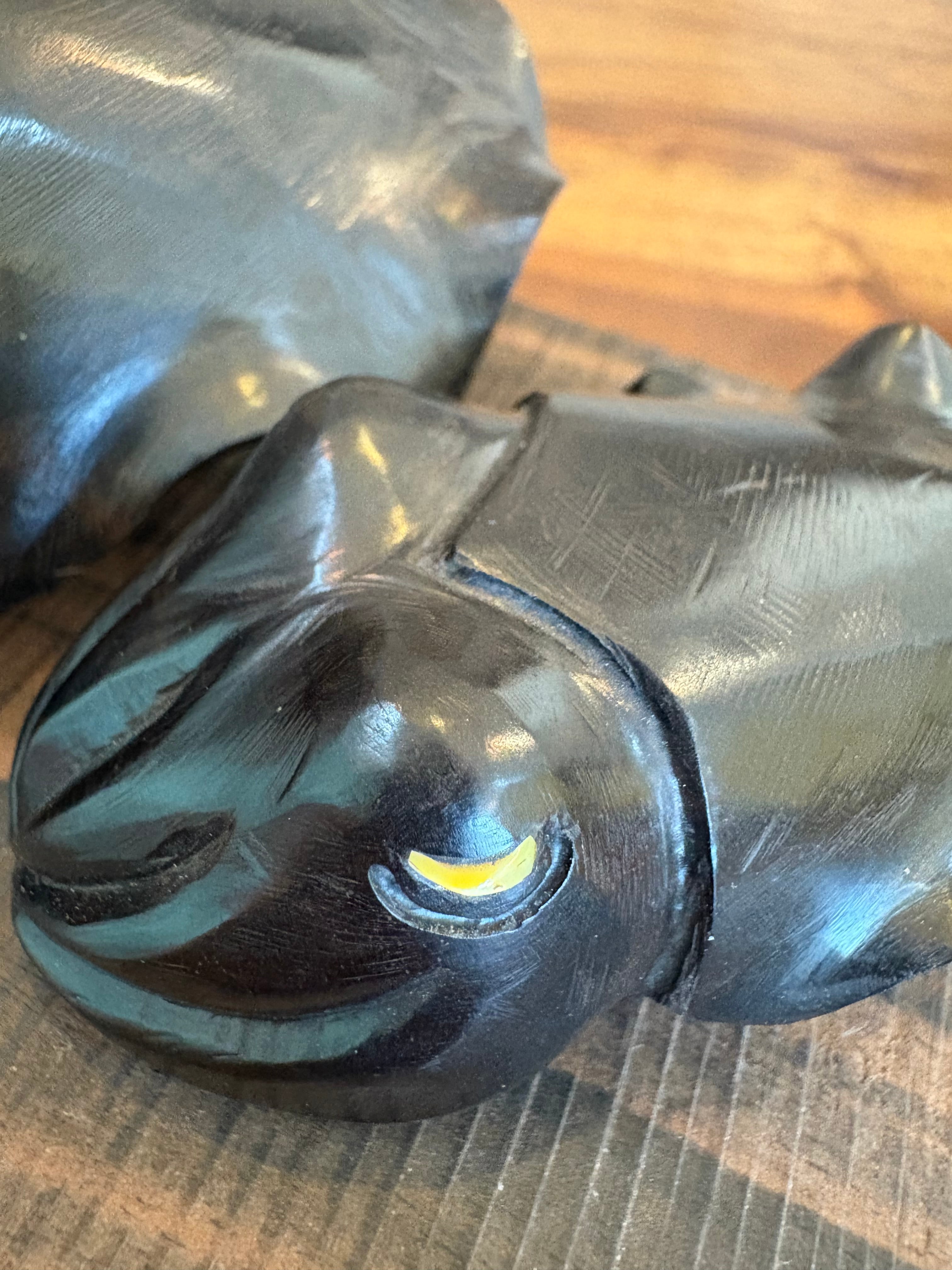 黒檀で作られたクブシミのオブジェです。目には白蝶貝を使用し、まるで海で優雅に泳いでいるかのような姿が特徴的です。台座がないため、どんな場所でも使いやすく、シンプルで洗練されたデザインが魅力となっています。お部屋やオフィスのインテリアとして、また贈り物にも最適です。黒檀の重厚感あるオブジェが、あなたの空間に特別な雰囲気を加えてくれることでしょう。