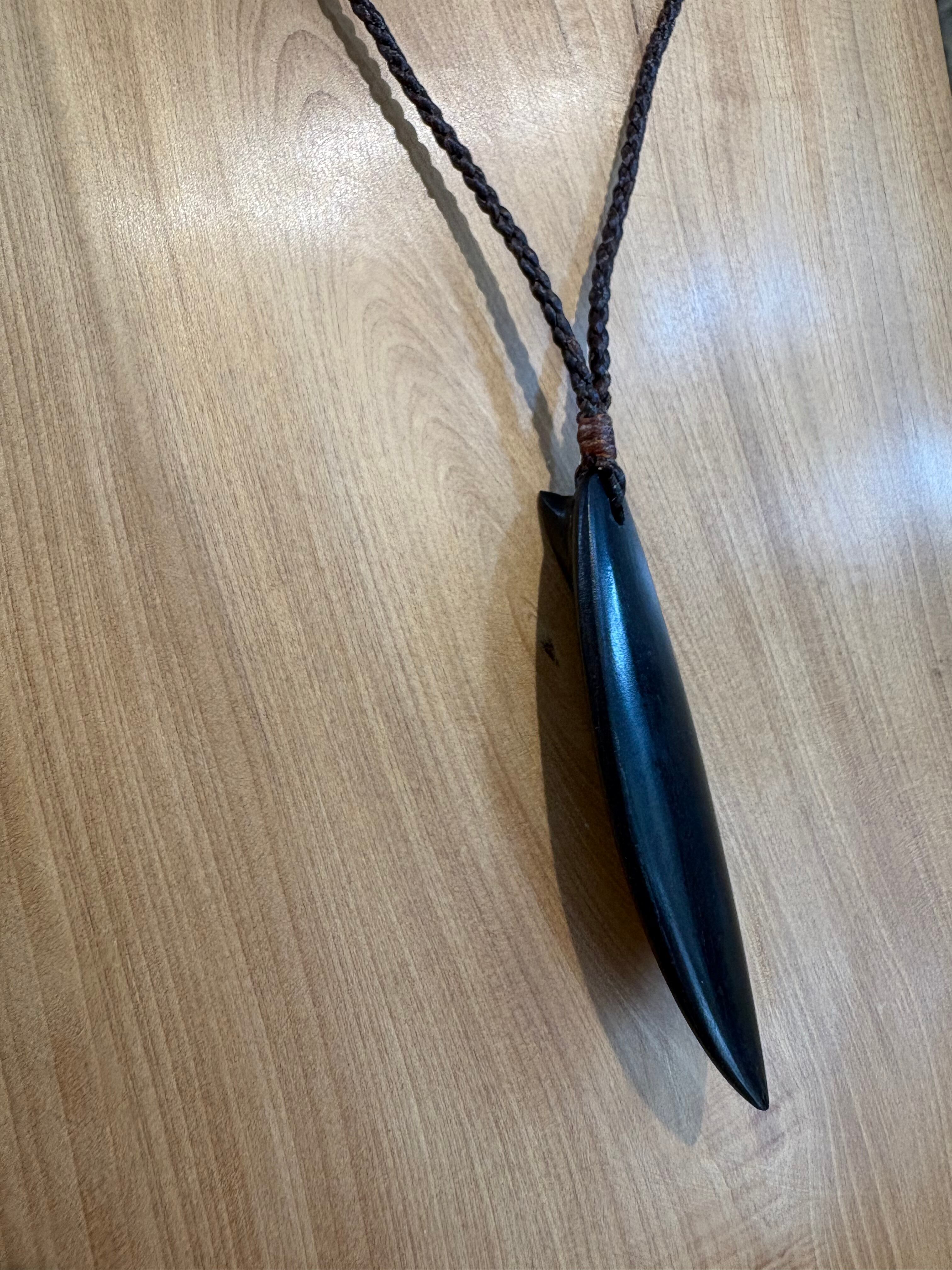 黒檀サーフボード紐ペンダントです。高品質な黒檀材を使用し、実際のサーフボードのデザインを忠実に再現したペンダントです。4本の紐で編み込まれたディテールが際立ち、サーフボード裏側のフィンも丁寧に削り出され、リアルな仕上がりとなっています。海やサーフィンが好きな方はもちろん、個性的なアクセサリーを探している方にもおすすめです。