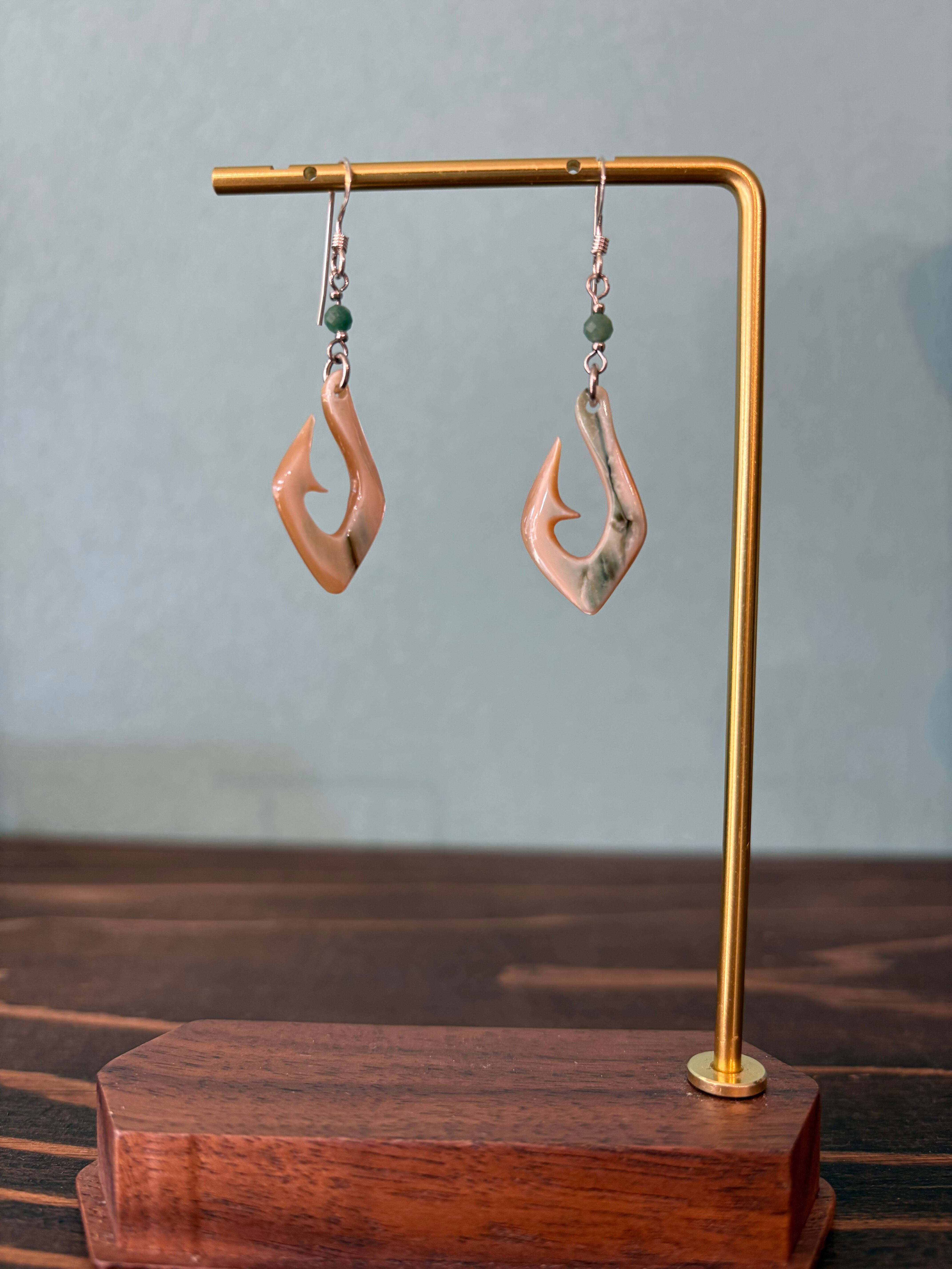 夜光貝のピアス フィッシュフック